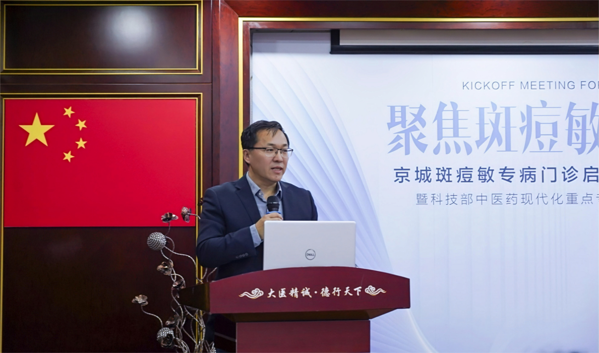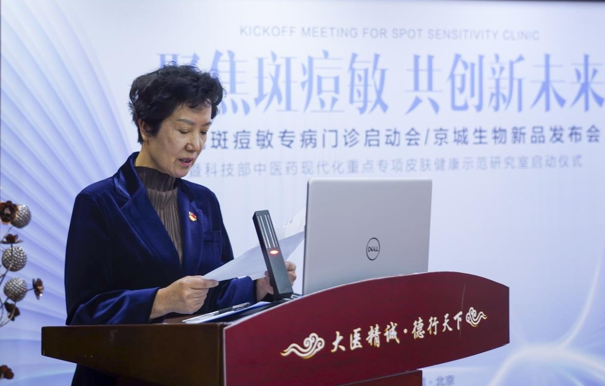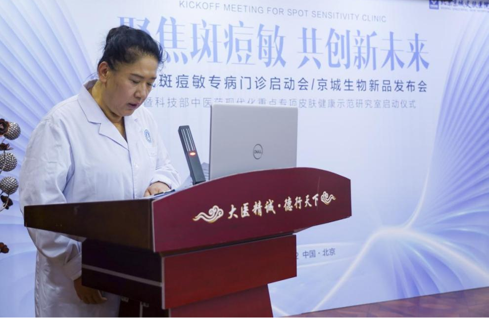 据京城皮肤执行总裁祝希春介绍:近年来,京城皮肤积极参与临床科研工作,除了参与科技部中医药现代化研究专项以外,还成功申报工信部、国家卫健委“5G+医疗健康应用试点项目”,参与了中国黄褐斑诊疗路径团体标准的制定;研制了银屑康颗粒和复方克银丸等院内制剂;京城生物科技有限公司研发出祛斑、祛痘、抗衰、美白、舒敏系列功效性外用产品。这些都为皮肤健康示范研究室的成立和斑痘敏专病门诊的发展提供了有益的借鉴,打下了坚实的基础。