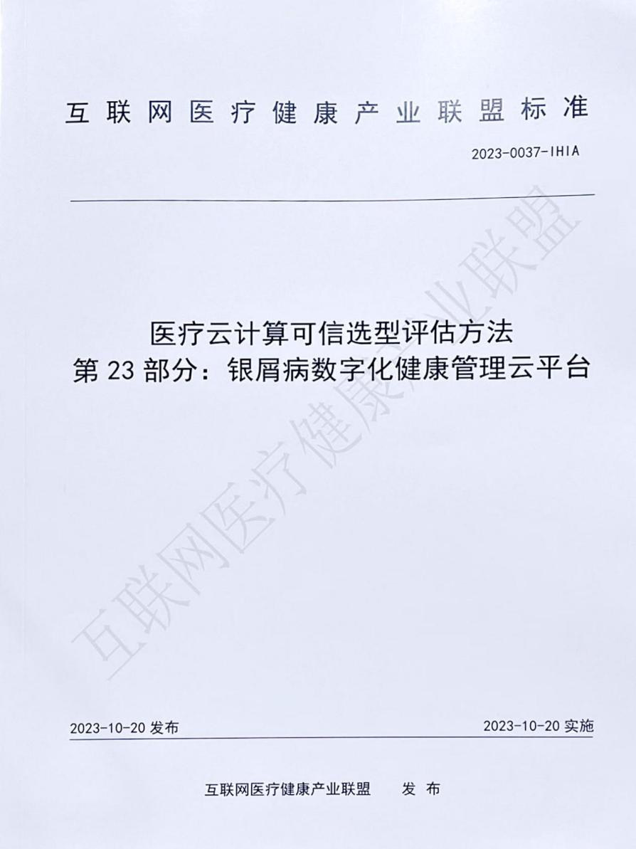 该标准由京城皮肤医院集团(北京)股份有限公司、清华大学附属北京清华长庚医院、中国信息通信研究院三家单位共同起草,由互联网医疗健康产业联盟提请中国标准化协会审批之后正式发布(编号2023-0037-IHIA);从基本信息披露、解决方案成熟度评估和云服务提供能力评估等方面,对银屑病数字化健康管理云平台的选型、评估和验收等问题作了指导。