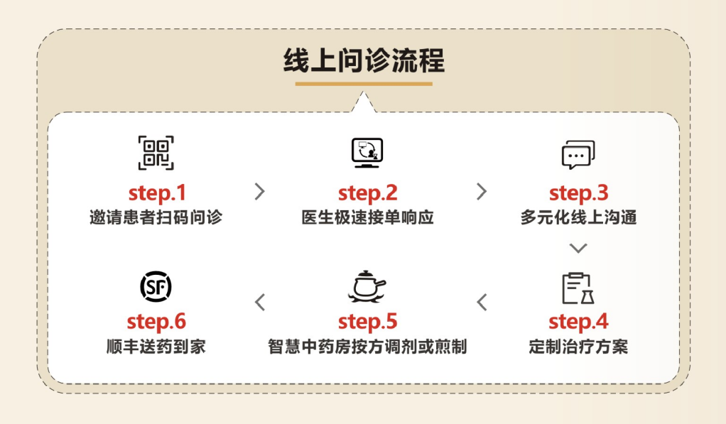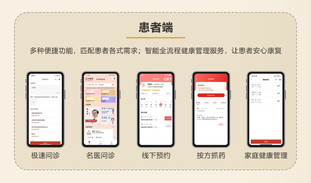 “互联网医院”+“智慧中医馆”+“智慧中心药房”三位一体数字医疗健康生态服务体系,实现中医健康服务资源的有序互联、高效整合,全面满足医患的中医药健康需求,让“防、治、养、扶”全方位全周期家庭中医药健康服务在挥动手指间即可完成。