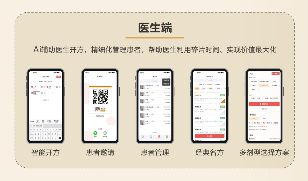 互联网医院:提供覆盖“防、治、养、扶”全生命周期的专业中医线上健康服务。通过AI技术和云计算引擎赋能诊疗全程,提供医师智荐、远程诊疗、AI辅助开方、个性化健康指导、家庭健康管理等智能服务。