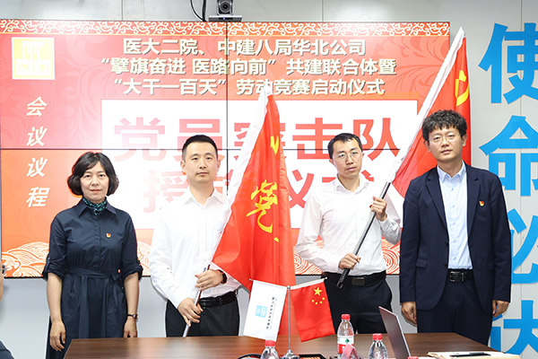 4月26日,天津医科大学第二医院与中建八局华北公司医大二院改扩建三期项目组织开展“擘旗奋进 医路向前”共建联合体暨“大干一百天”劳动竞赛启动仪式。在“五一”劳动节前夕,点燃项目建设“红色引擎”,汇聚高质量发展新动能。