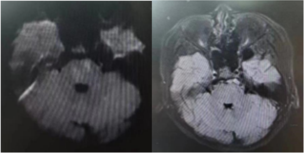 患儿到院后立即完善头颅核磁检查提示:脑桥、双侧小脑半球多发异常信号,多考虑脑梗死(急性期);基底动脉及双侧椎动脉颅内段局部未显影,多考虑闭塞。卒中中心启动绿色通道评估。
