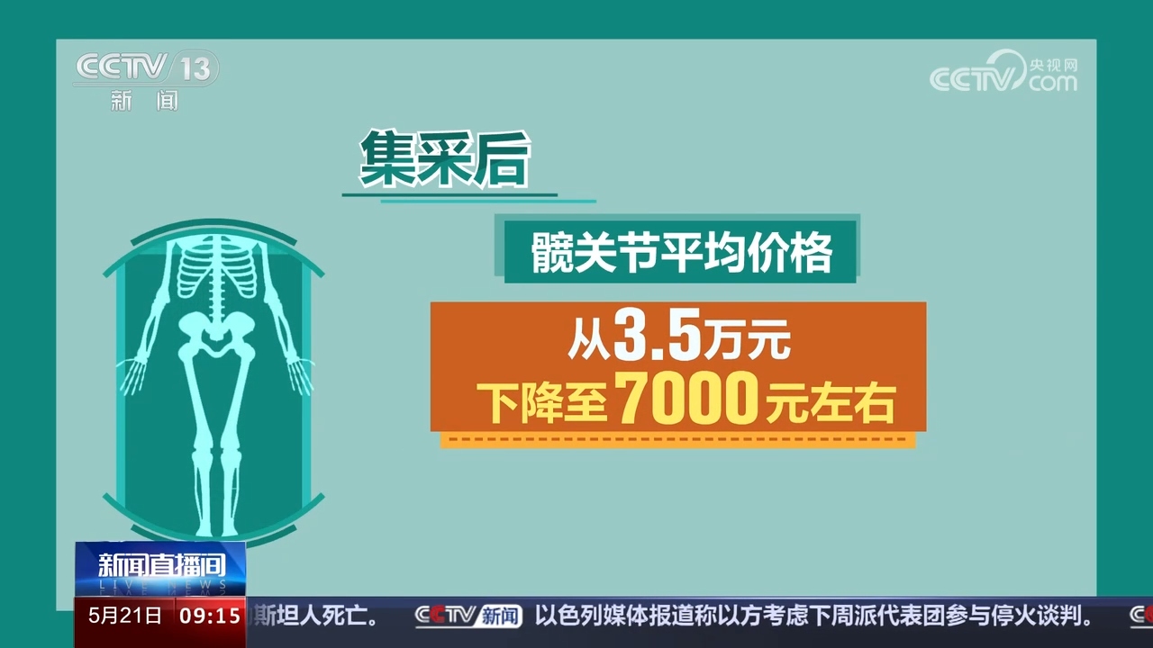 杨女士手术费用的大幅减少就是因为国家组织人工关节集采。集采后,髋关节平均价格从3.5万元下降至7000元左右,膝关节平均价格从3.2万元下降至5000元左右,政策实施以来,人工全关节置换手术耗材的价格降幅达80%左右。