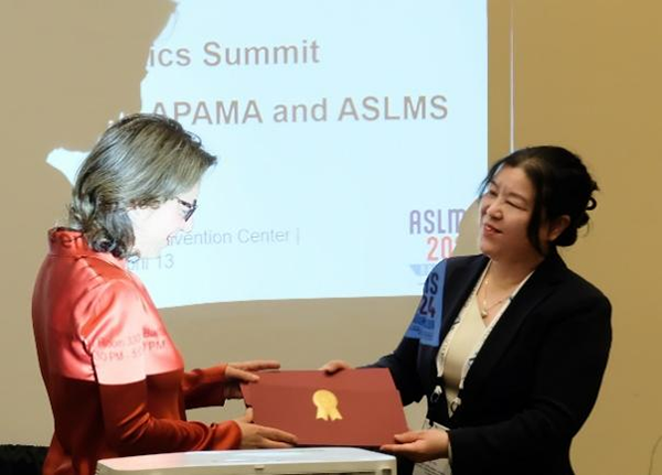 与此同时,王莹博士也得到表彰,作为威尔曼光医学中心(麻省总医院中的顶级医学实验室)Rox Anderson实验室的一员,她担任了ASLMS国际事务委员会成员和国际大使,也同时担任APAMA秘书长一职,她为APAMA进入ASLMS及Asian Virtual Magic Wand项目的成立做出了重要的贡献。